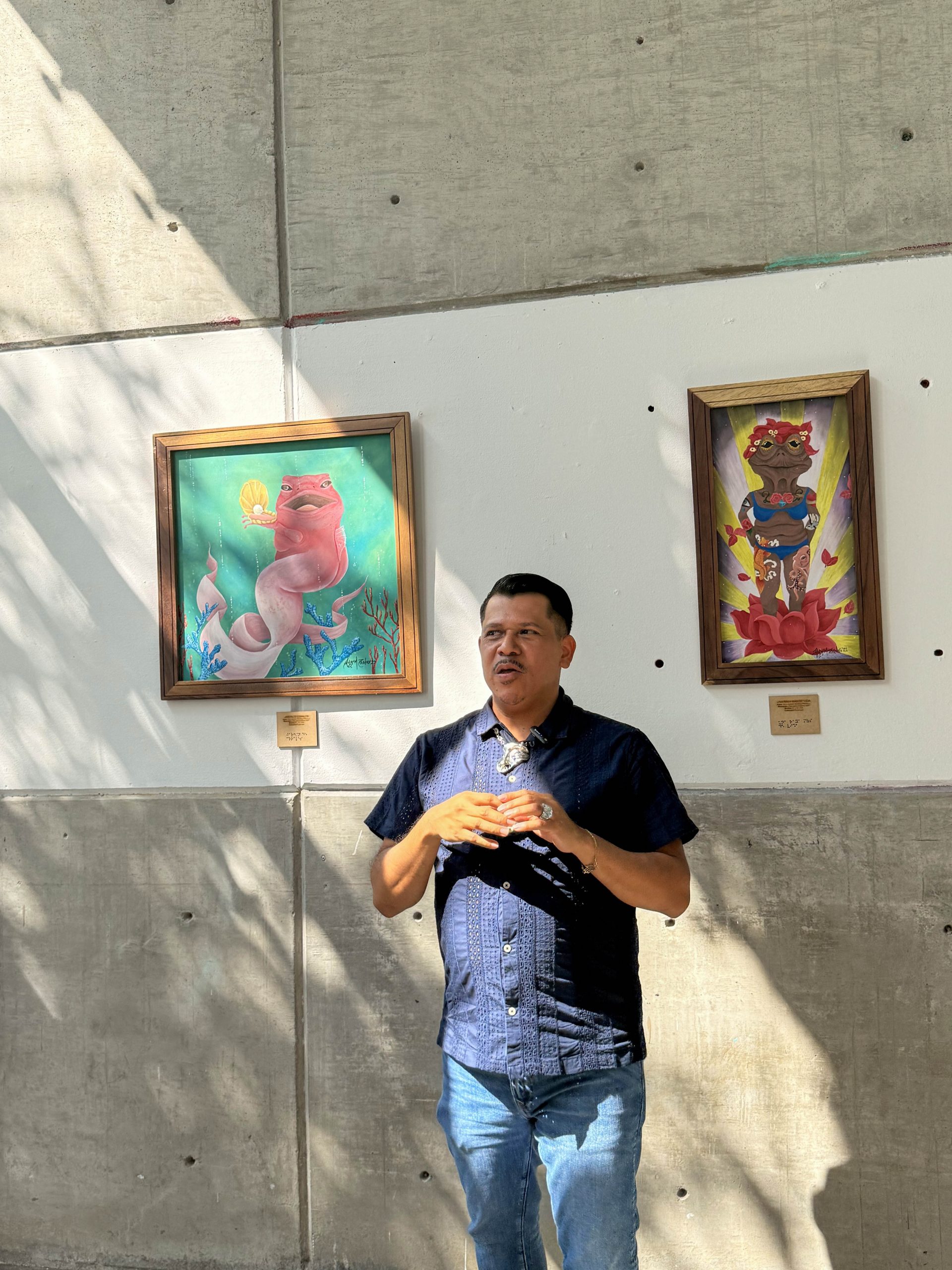 La exposición rinde homenaje a los cenotes, lagunas costeras y pantanos, espacios naturales que poseen una belleza propia y fascinante. A través de texturas, sonidos y estímulos olfativos, el artista logra transportar al visitante a estos entornos acuáticos, generando conciencia sobre su riqueza y fragilidad. Este enfoque permitió que las y los estudiantes reflexionaran sobre el papel del diseño como herramienta de sensibilización ambiental y cultural.