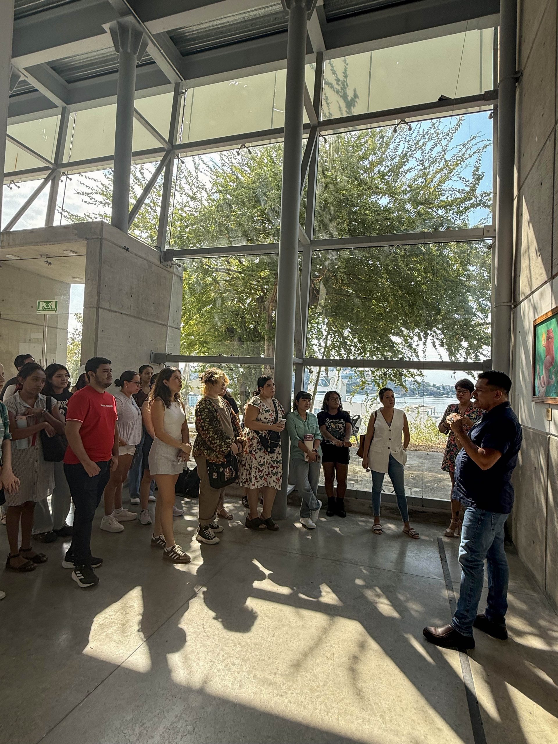 Como parte de su formación académica y profesional, estudiantes de 6.º y 8.º semestre de la Licenciatura en Diseño Gráfico de la Universidad Loyola, en compañía de la Mtra. Georgina Pineda Salas, docente de las materias de Semiología para el Diseño y Taller de Diseño de Productos, realizaron una visita a la experiencia inmersiva “Estanque”, del Mtro. Andrés Martínez Pacheco, egresado de la Universidad Loyola del Pacífico, artista plástico y Jefe Regional de la Zona Sur, actividad que se llevó a cabo en la Galería de Artes Plásticas del Museo Histórico Fuerte de San Diego, consolidándose como una experiencia significativa que fortaleció el aprendizaje desde la vivencia directa del arte contemporáneo.