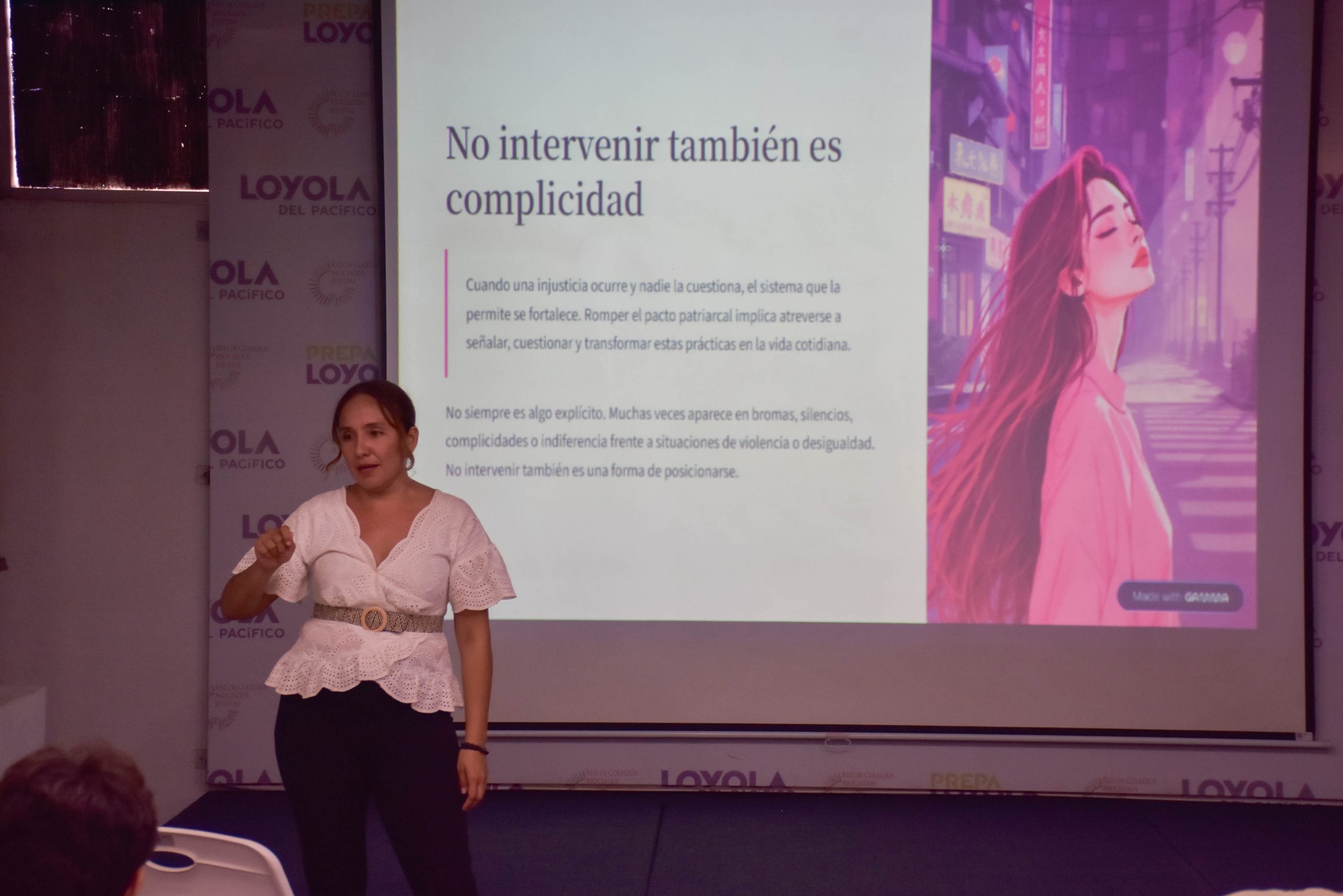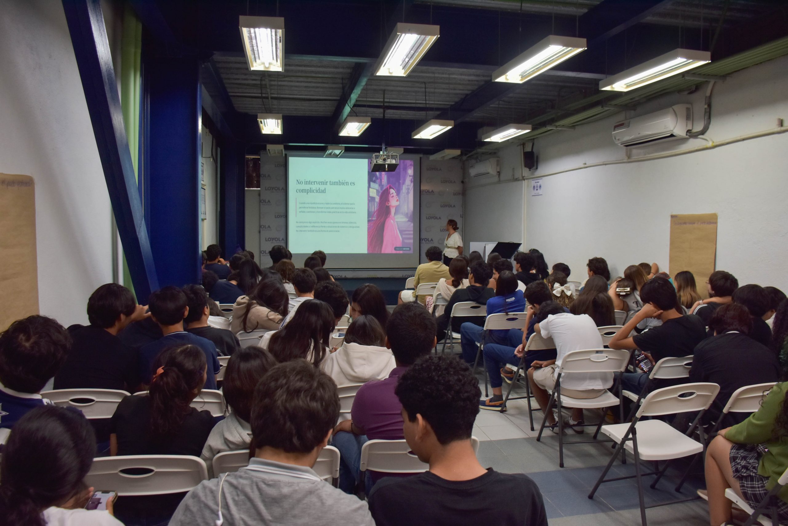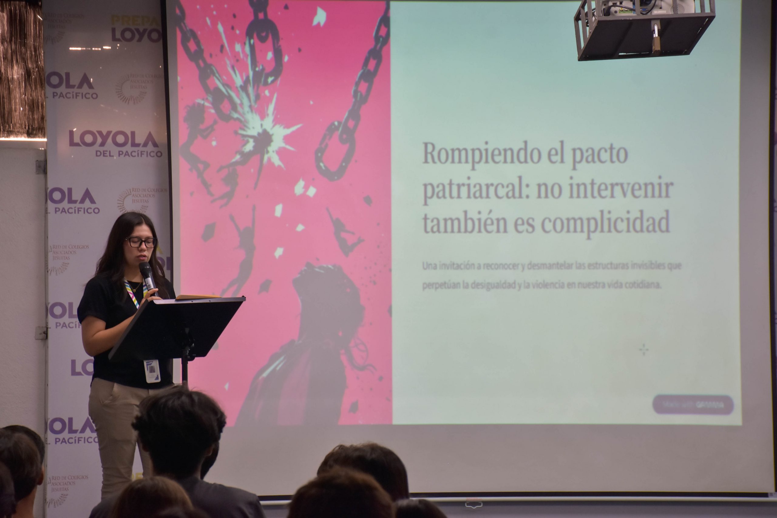 En la Prepa Loyola, se llevó a cabo la conferencia “Rompiendo el pacto patriarcal: no intervenir también es complicidad”, impartida por la Mtra. Adriana Paz Lemus, donde se propició un espacio de análisis profundo sobre las desigualdades de género. A través de este encuentro, las y los estudiantes reflexionaron sobre cómo las actitudes machistas continúan presentes en la sociedad y cómo el silencio o la indiferencia pueden contribuir a perpetuarlas. La charla impulsó una mirada crítica que invitó a asumir una responsabilidad tanto individual como colectiva, motivando a cuestionar, actuar y transformar desde lo cotidiano.